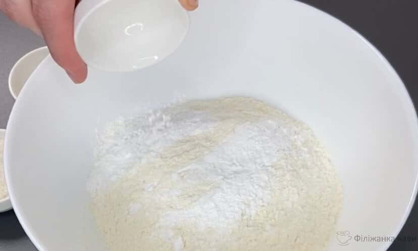 У просіяне борошно додати розпушувач, цукор, ванільний цукор. Перемішати.