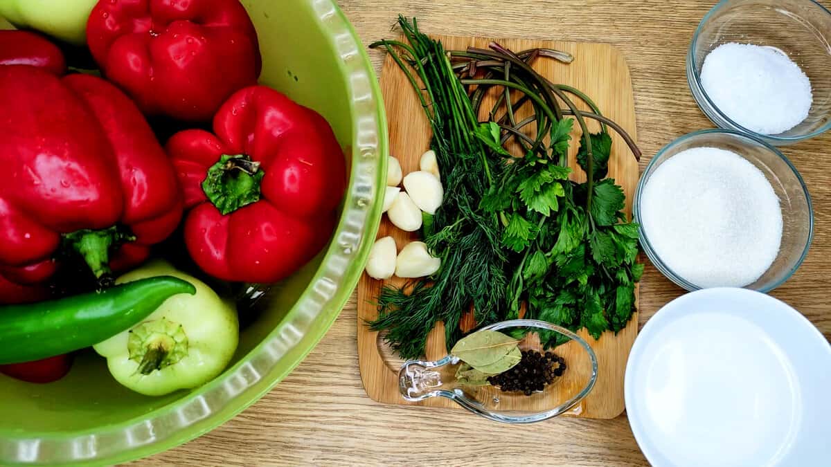 Для цього рецепта нам будуть потрібні м’ясисті червоні і зелені перці.