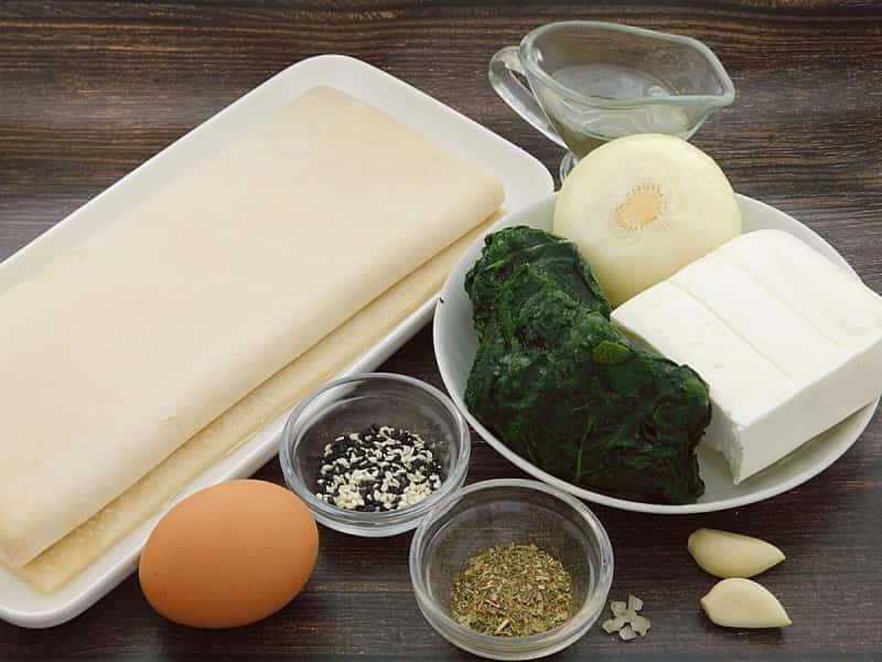 1. Підготувати все потрібне. Листкове тісто дістати заздалегідь, щоб розмерзлося. Шпинат тут використовується заморожений.