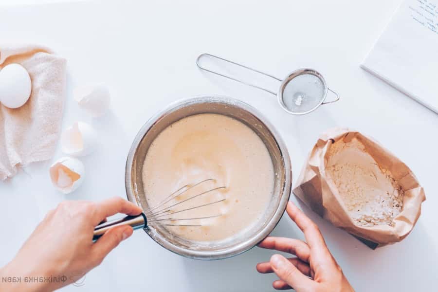 3. Борошно додаємо в останню чергу і зовсім потроху, щоб жодної грудочки в наших ідеальних млинцях не було.