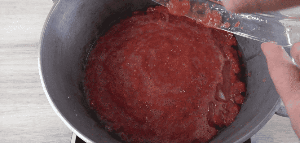 Вливаю в казан (товстостінну каструлю) соняшникову олію та викладаю томатну масу, ставлю на плиту. Після закипання залишаю варитися 30 хвилин.