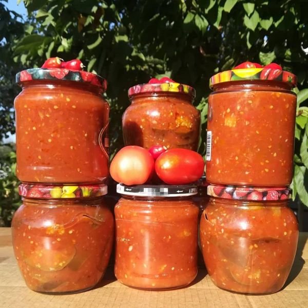 3. Баклажани разом з аджикою розкладіть по стерилізованих баночках, закатайте, укутайте до повного остигання.