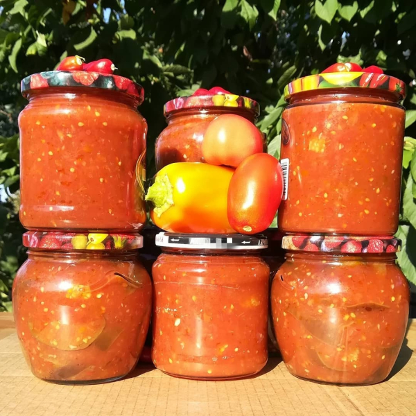 1.Помідори, очищений від насіння солодкий та гіркий перець, часник пропустіть через м’ясорубку.