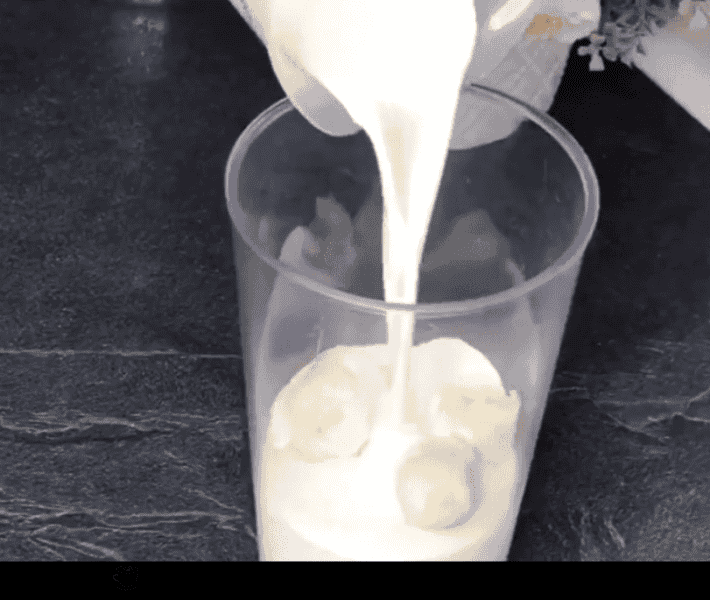 - З’єднати банани із вершками. Пробити занурювальним блендером у пюре. Додати сік лимона.