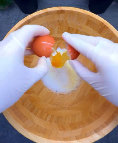 🔻Змішуємо цукор, ванільний цукор, дрібку солі та одне яйце.