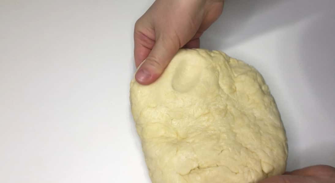 Тісто дістаємо з морозилки, ділимо на дві частини, трохи підмішуємо, щоб стало однорідним.