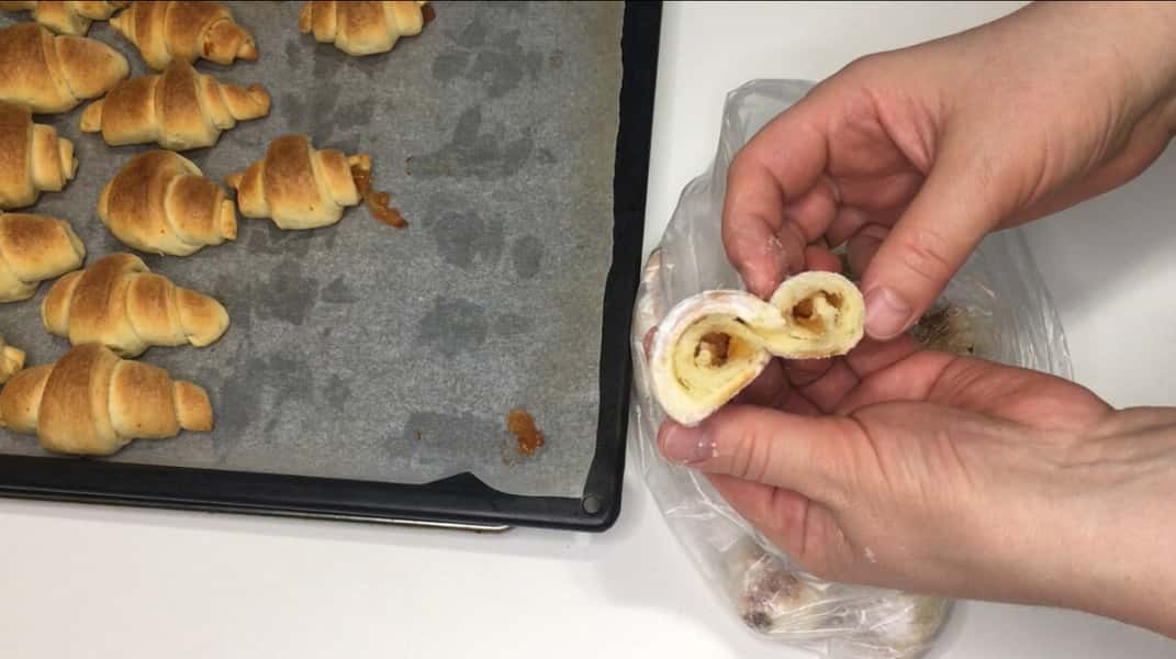 Рогалики виходять з тонкою хрусткою скоринкою, злегка шаруваті та яскравим вершковим смаком.