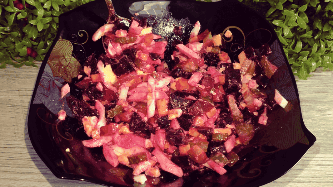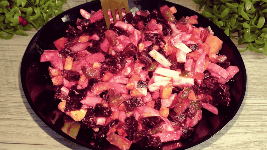Смачний і простий в приготуванні салат з буряком. У ньому зовсім небагато інгредієнтів. Соковитий, смачний, солодкий буряк відмінно поєднується з іншими інгредієнтами.
