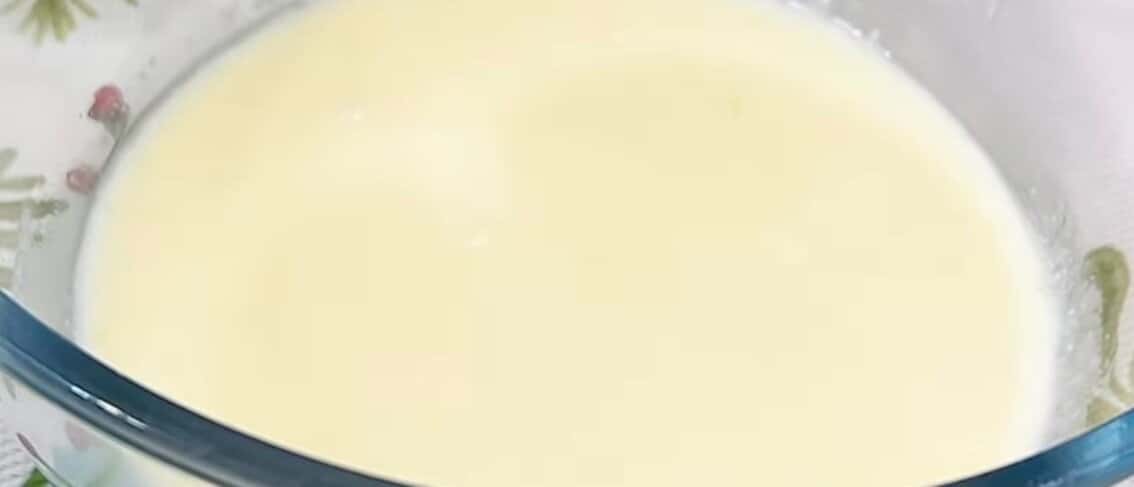Виливаємо кефір кімнатної температури і гарненько розмішуємо.