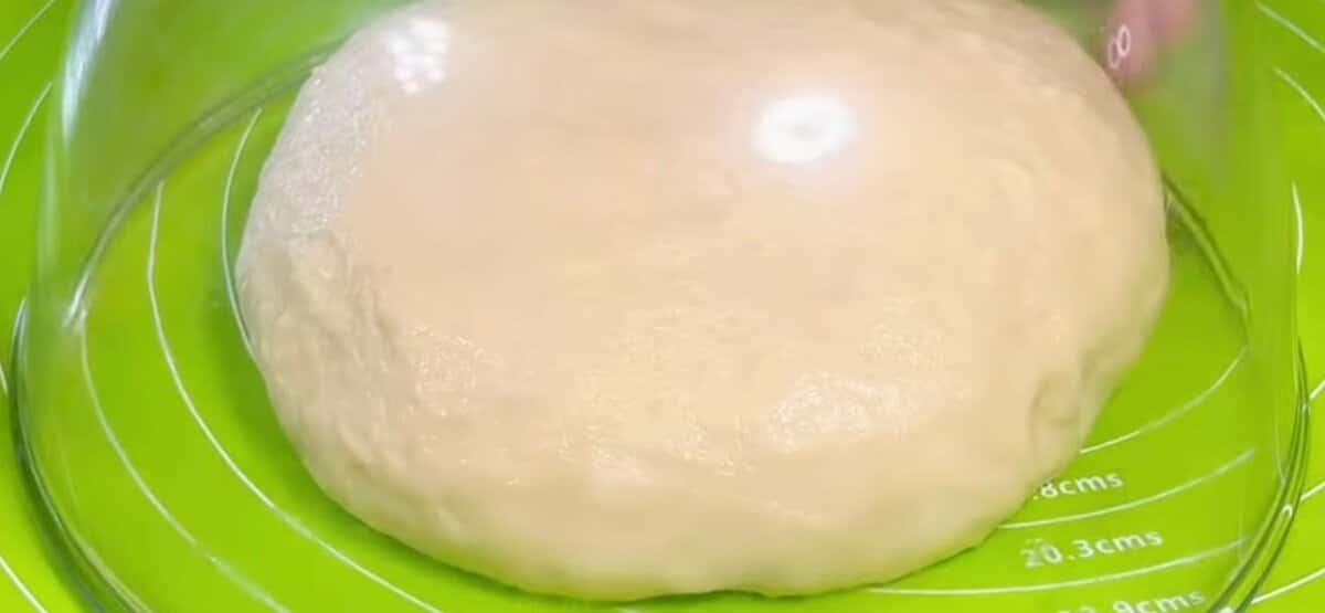 Поливаємо тісто олією і замішуємо на робочій поверхні ( 3-4 хвилини ). Ми залишаємо під кришкою на 10 хвилин.
