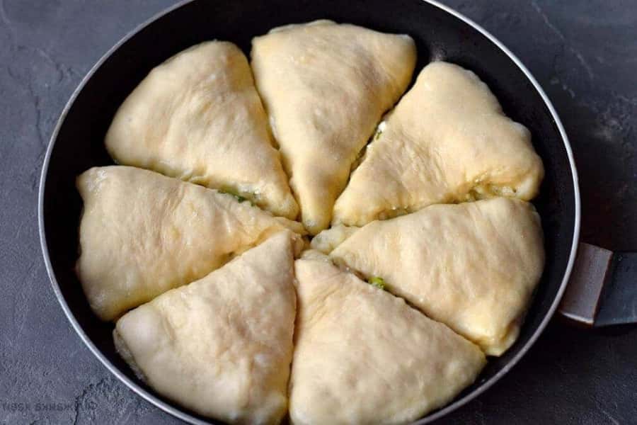 Смажимо їх в олії і отримуємо повноцінну страву у вигляді пиріжків. За рахунок м’якого тіста, вони виходять ніжними, повітряними і пишними. У період смаження сир повністю розплавляється, тому начинка виходить дуже соковитою, головне їсти страву в теплому вигляді. Надалі можна готувати такі пиріжки з самою різною начинкою за смаком.