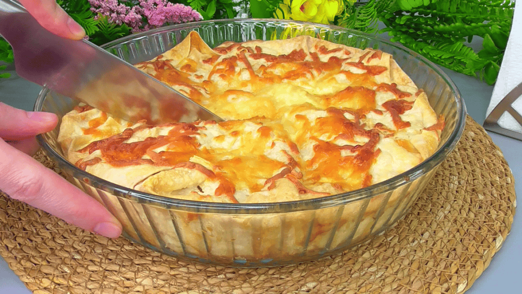 Все зробила нашвидкуруч, без замісу тіста, а з готового лаваша. У результаті вийшов дуже смачний, ситний, соковитий пиріг. Всім домашнім дуже сподобався, з’їли за один раз.