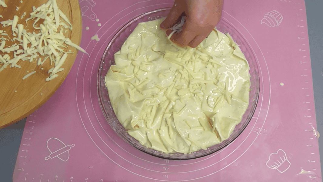 ✅ Будь-який сир натираємо на великій тертці та посипаємо верхнім шаром.