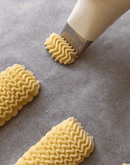 3) Прикріпіть насадку № 897 до кондитерського мішка і видавіть його на деко, застелене пергаментним папером, як показано на фото.