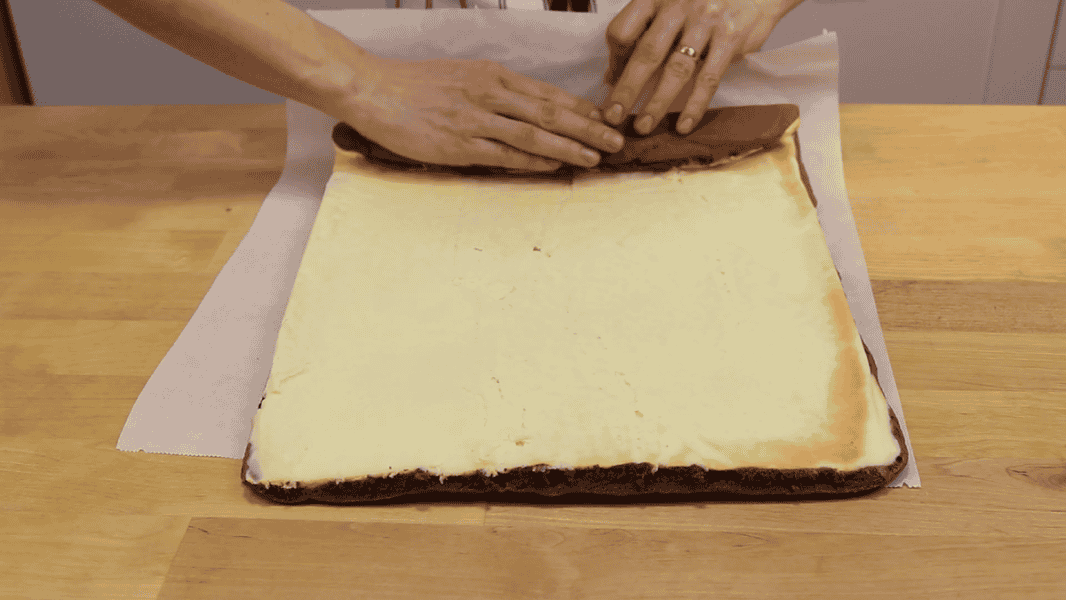 Готовий бісквіт перевертаю на пергамент.