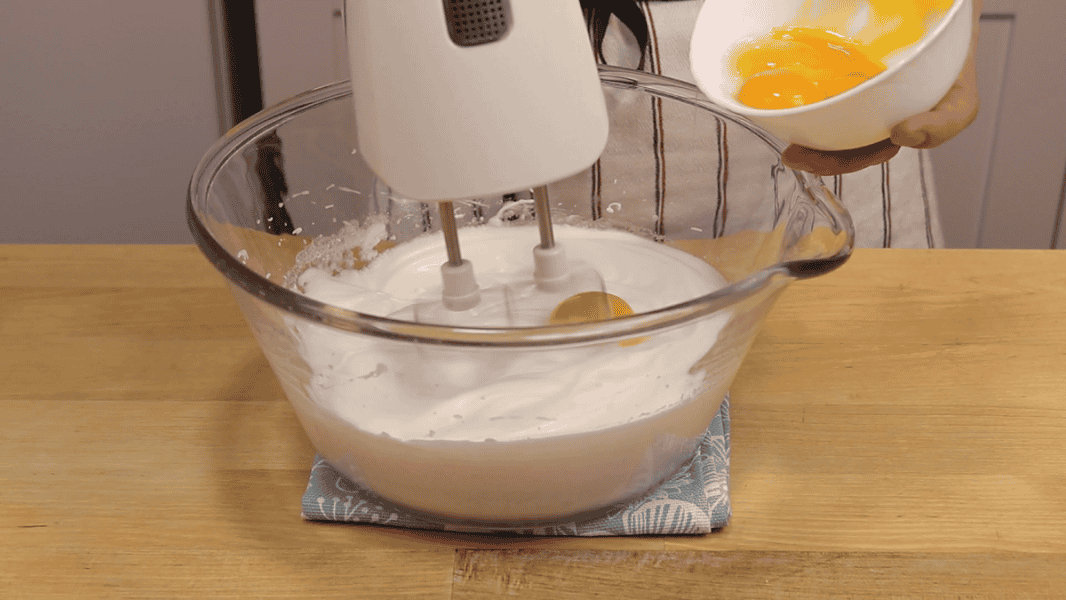 По одному додаю жовтки. Перемішую.