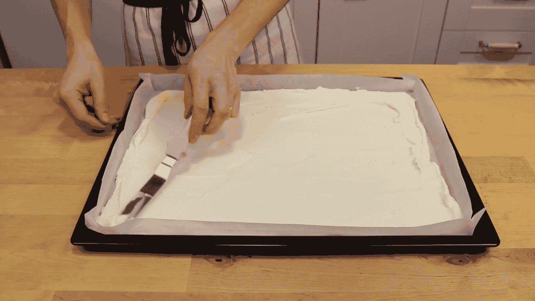 Перекладаю на лист і розрівнюю. Зверху можна додати ягоди, заморожені чи свіжі.