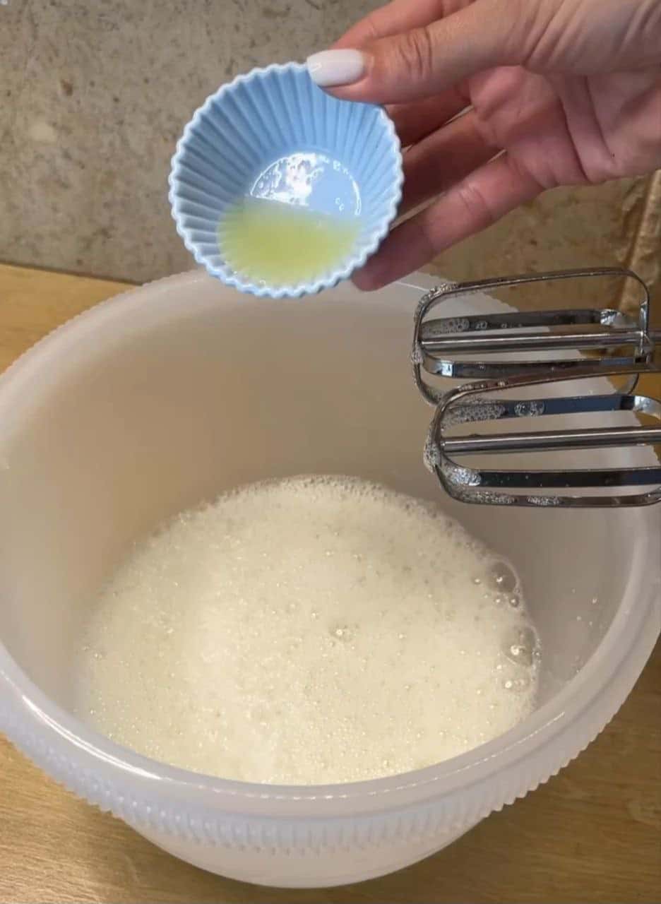Білки починаю збивати, додаю сіль, лимонний сік.