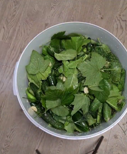 У мене зараз відро стоїть не в підвалі, а на веранді, де тепло, тому процес засолювання йде швидше. Можна одразу засолити у підвалі та залишити так огірки у бочці на всю зиму. А можна так – після того, як огірки просоляться перекласти їх у банки, розсіл прокип’ятити, залити ним банки і закатати кришкою. Кому, як більше подобається. ⠀