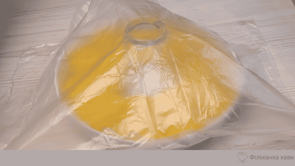 Миску змащуємо олією, кладемо в неї тісто. Накриваємо миску харчовою плівкою або кухонним рушником.