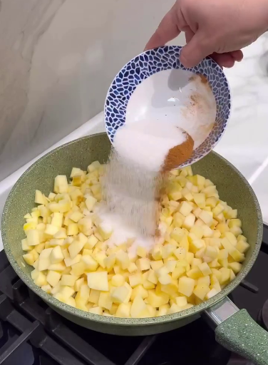 Розігріти в сковороді вершкове масло, додати яблука, посипати цукром з корицею і полити лимонним соком. Зняти з вогню і повністю охолонути до кімнатної температури.