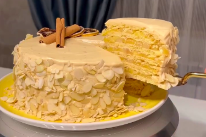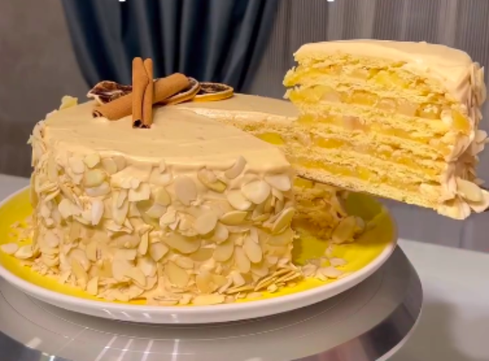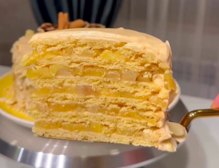 “Яблучний торт” – ніжні пісочні коржі, зволожені яблучною начинкою та карамельний крем: неймовірно смачний, ароматний, готувати можна за 2-3 дні до свята, він буде лише смачнішим!