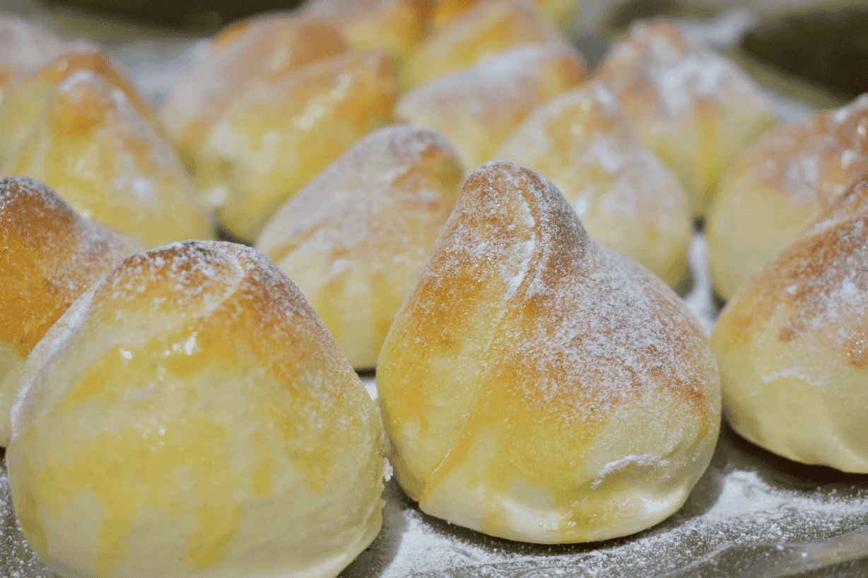 За вказаними пропорціями булочки виходять не дуже солодкі, тому цукрова пудра не буде зайвою та доповнить смак.