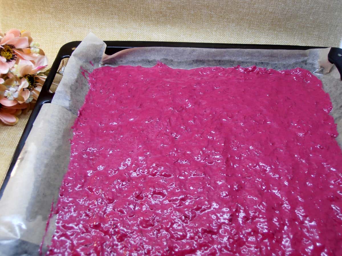 5. На деко викладаємо силіконізований пергаментний папір і виливаємо тісто. За допомогою лопатки розділимо його тонким шаром. Ставимо в розігріту духовку до 200 градусів на 15 хвилин.