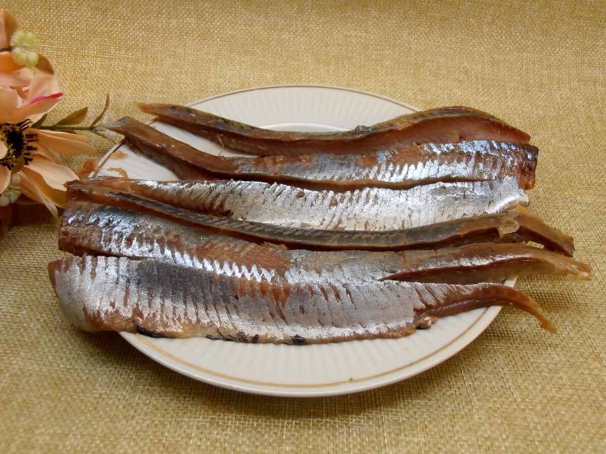 8. Оселедець чистимо і обробляємо на філе. Розрізаємо кожну половинку на 3 частини ( частина з черевця відкладаємо – вона нам не знадобиться ).