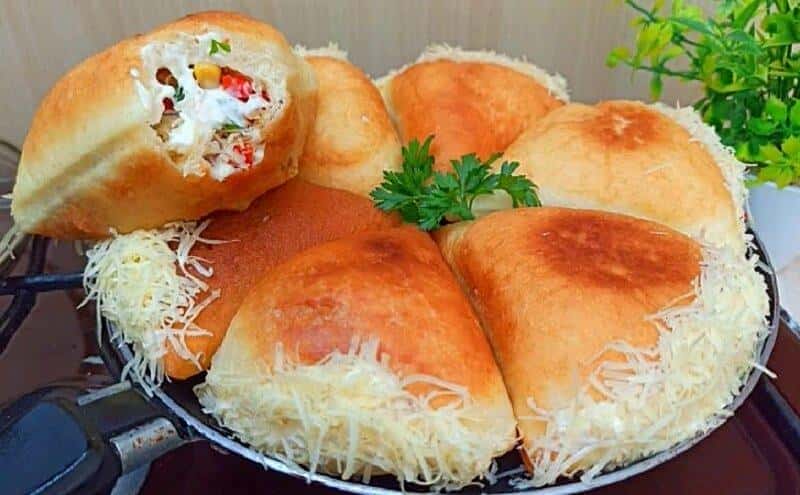Для начинки можна взяти відварну картоплю, змішану з обсмаженим м’ясним фаршем і цибулею, можна додати і обсмажені гриби. Можна взяти тушковану капусту з фаршем і рисом. І багато інших видів начинки. Кожен раз будуть виходити дуже смачні пиріжки.
