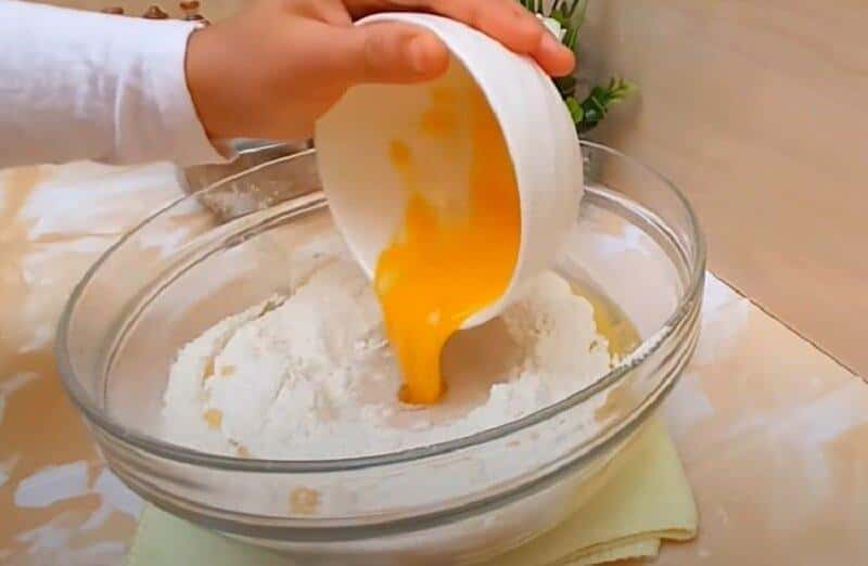 У теплому молоці в мисці розчиняємо сіль і цукор, розводимо дріжджі, додаємо олію, просіяне борошно, яйце і вимішуємо тісто. Накриваємо його плівкою і даємо відлежатися і піднятися протягом приблизно 30 – 35 хвилин.