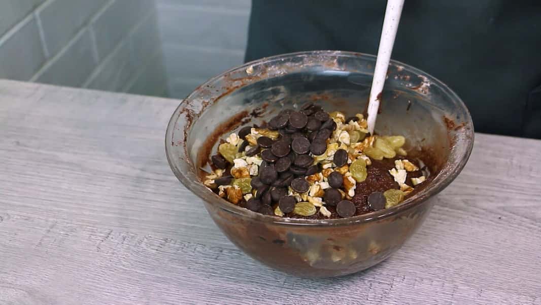За смаком додаємо родзинки, сухофрукти, горіхи, шоколадні краплі, цукати тощо. Все це зробить паску ще смачнішою. Перемішуємо.