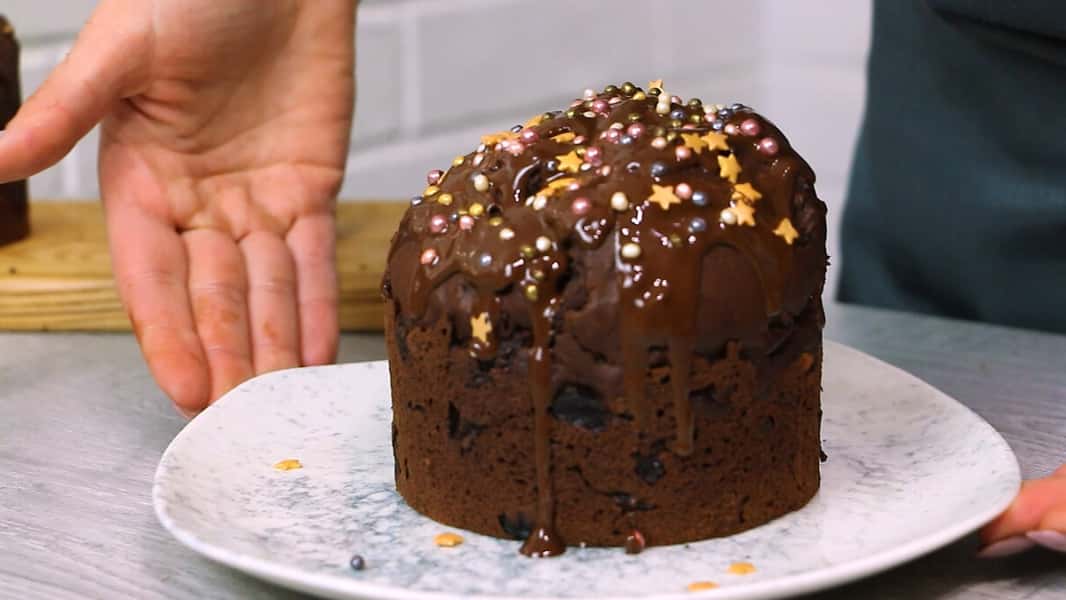 Готовий кекс обмазуємо глазур’ю або як я поливаємо розтопленим шоколадом. Посипаємо кондитерською посипкою.