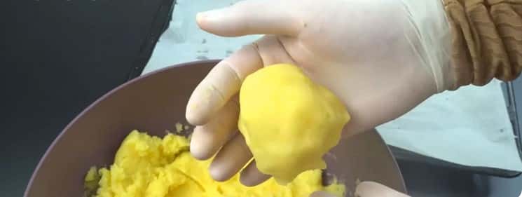 - З картопляного пюре потрібно зліпити невеликі кулі. Розмір, як на фото.