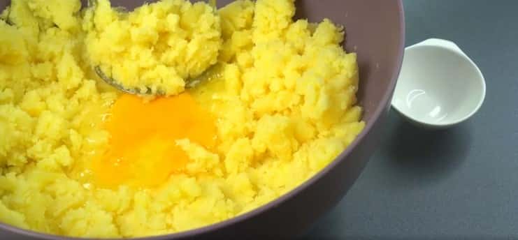 - Молоко чи воду додавати у пюре не варто, а вбийте в нього одне яйце. Знову добре попрацюйте товкачем. Подрібнюйте суміш ретельно, щоб не зустрічалися грудочки картоплі.