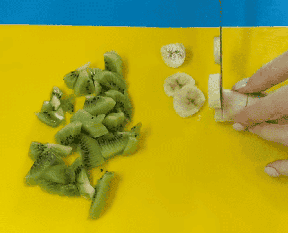 Половину апельсина та ківі нарізати кільцями та півкільцями.