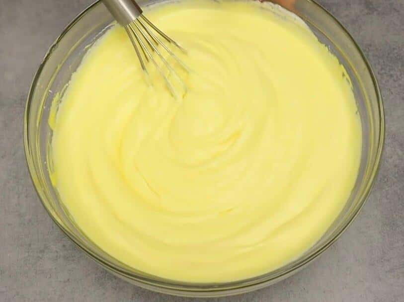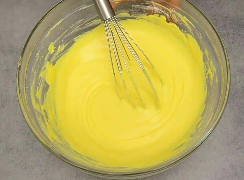Потім додаємо жовтки, апельсиновий сік і добре перемішуємо вінчиком до однорідності.