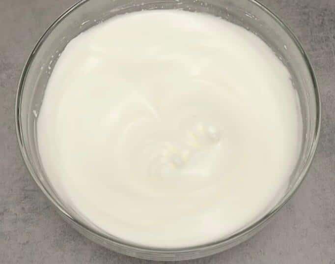 У чисту миску вливаємо яєчні білки і збиваємо міксером до білої маси, поступово додаючи цукор.