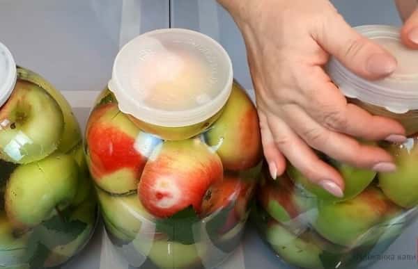 Коли пінка осяде, банки з яблуками закрити капроновими кришками