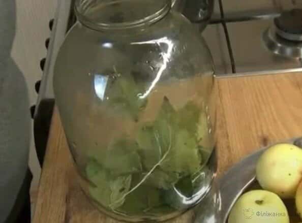 Щільно укласти яблука перемішуючи їх з листям.