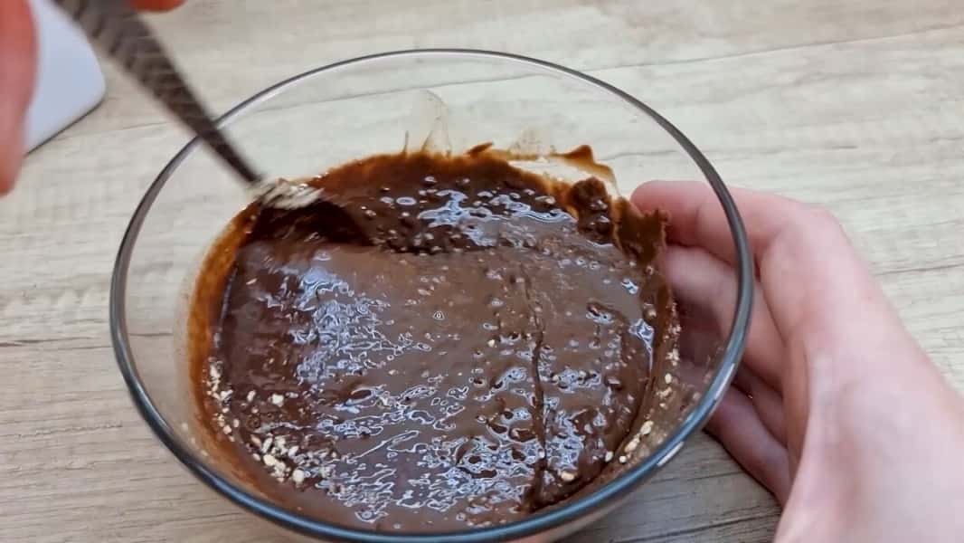Додати горіхову крихту в розтоплений шоколад і добре розмішати до однорідності