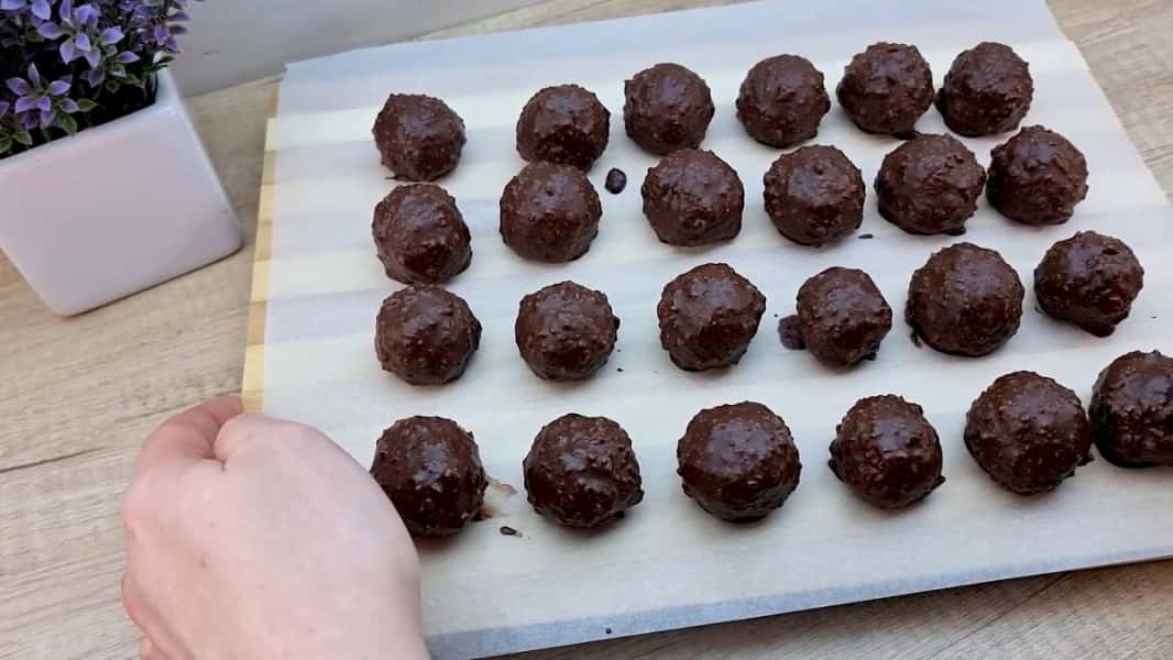Дістати з холодильника готові цукерки, зняти з пергаменту та можна приступати до чаювання