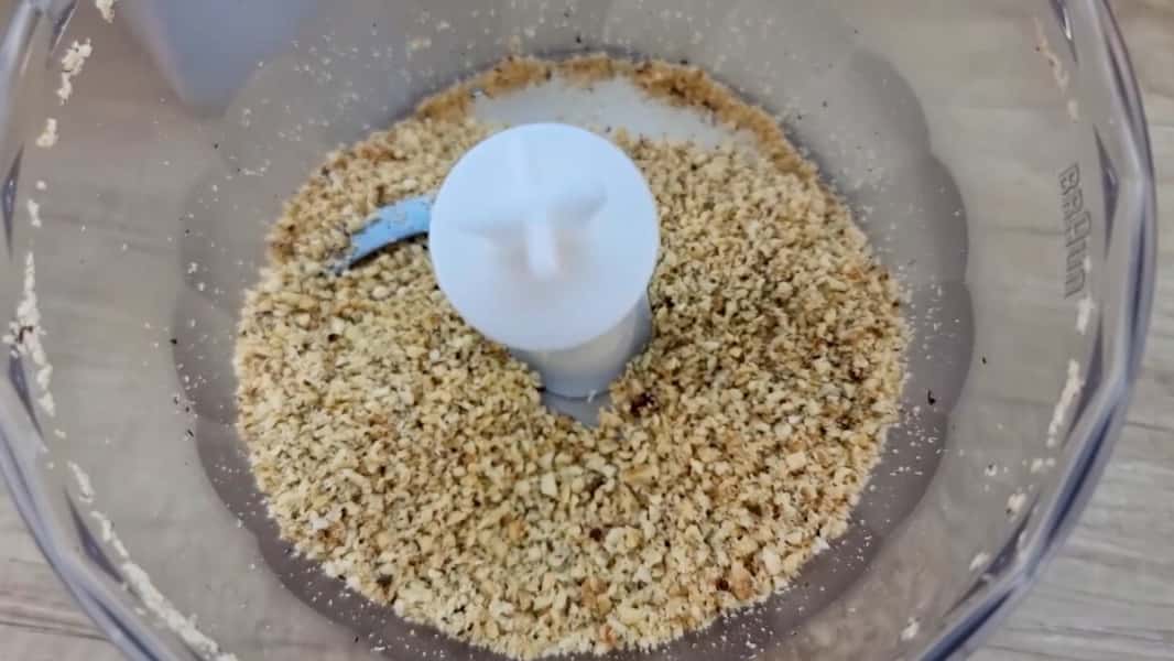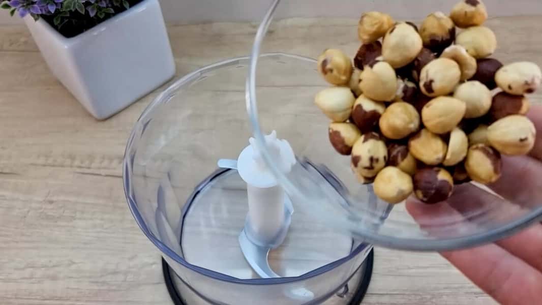 Подрібнити в крихту блендером 50 г фундука або інших горішків.