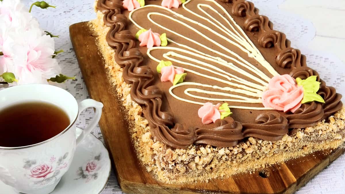 Готовий торт *Київський* прибрати в холодильник на кілька годин просочитися.