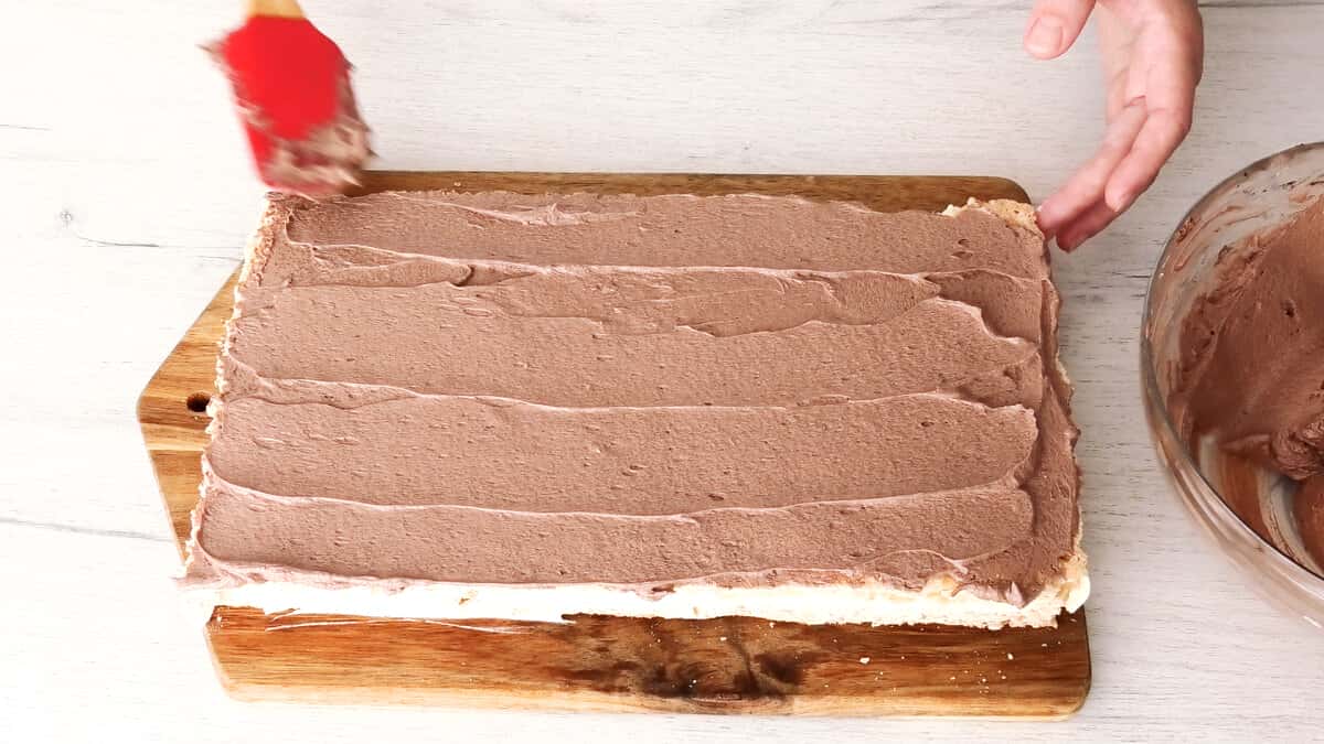 Частину крему відкласти в іншу миску, додати какао і добре збити.