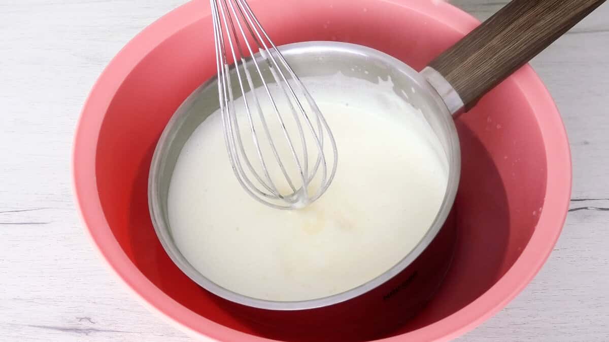Відразу поставити остуджуватися в миску з крижаною водою. Добре остудити молочно-яєчний сироп.