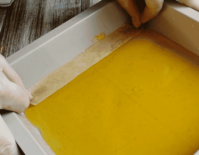 Маса застигла і стала гнучкою. Змащуємо лопатку олією і проводимо по периметру форму, від’єднуючи мармелад від стінок.