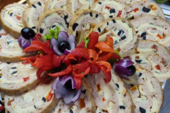 - Готовий торт звільняємо від кільця та ацетатної плівки. Обмазуємо бік торта раніше відкладеним кремом.