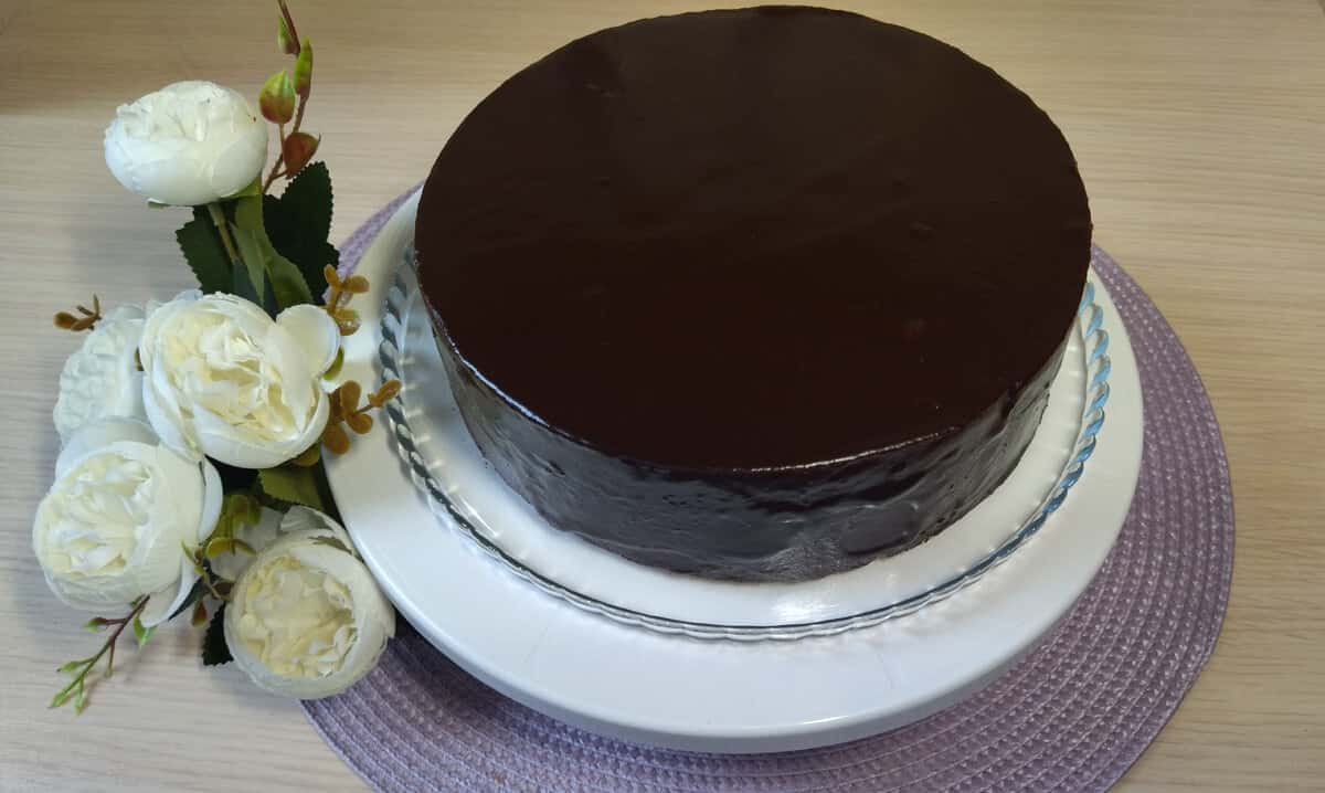 Покриваю, заздалегідь приготовленою глазур’ю (шоколад і масло розтопити на водяній бані). Відправляю в холодильник на пів години, щоб глазур застигла.