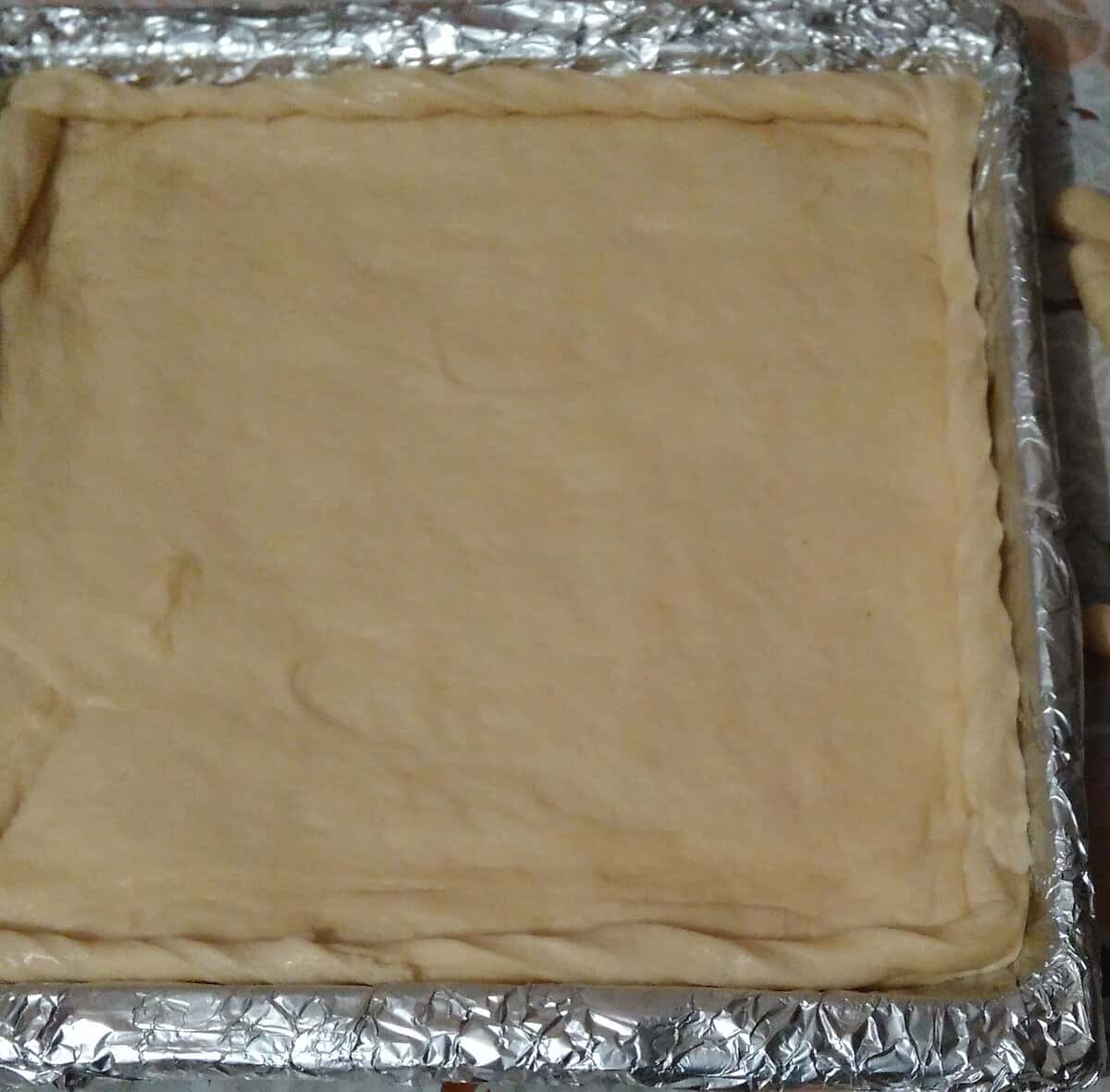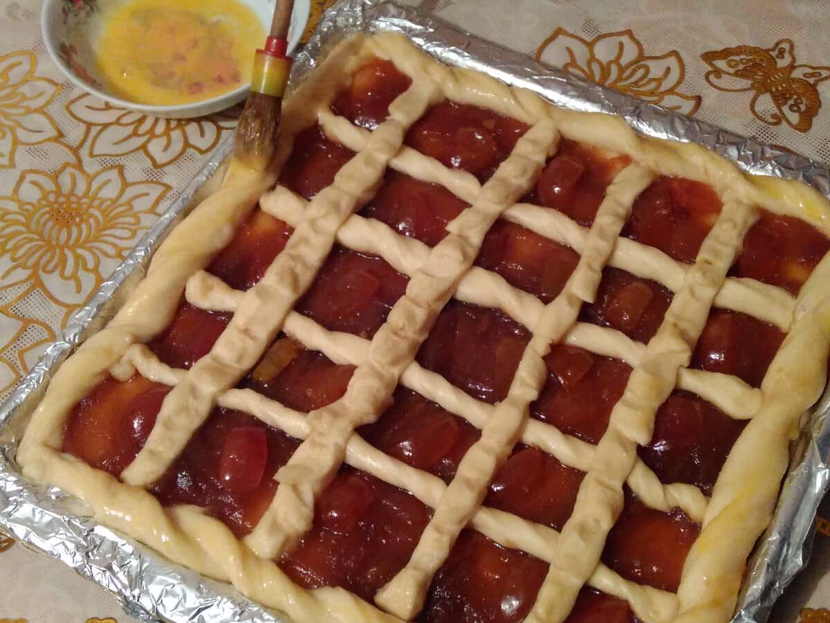 13 . Розкачую другий відріз тіста і прикрашаю ним пиріг.
